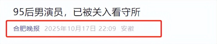 合肥晚报|95后男演员,已被关入看守所.2025