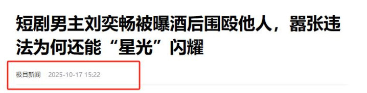 极目新闻|短剧男主刘奕畅被曝酒后围殴他人,嚣张违法为何还能“星光”闪耀.2025